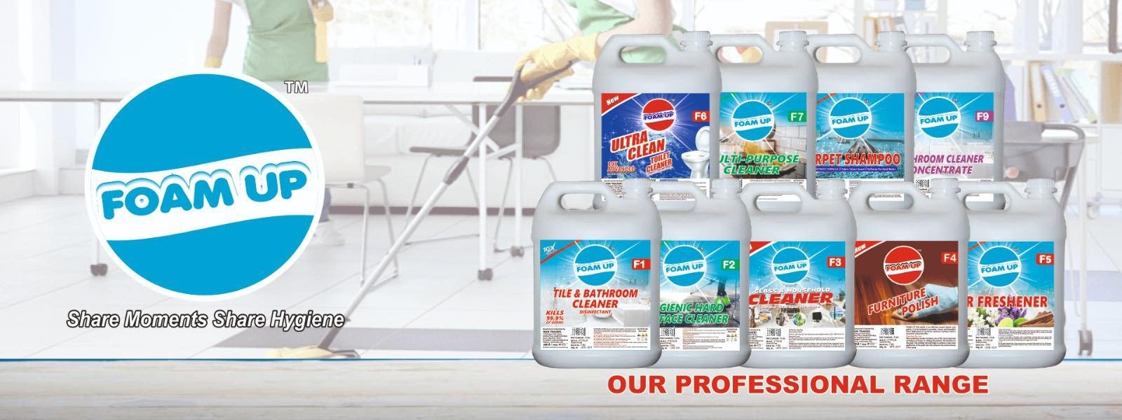From kitchens to bathrooms and floors to fabrics, FOAMUP offers complete hygiene care. One brand, multiple solutions for every need. We provide 33+ products for your daily need cleaning solutions.