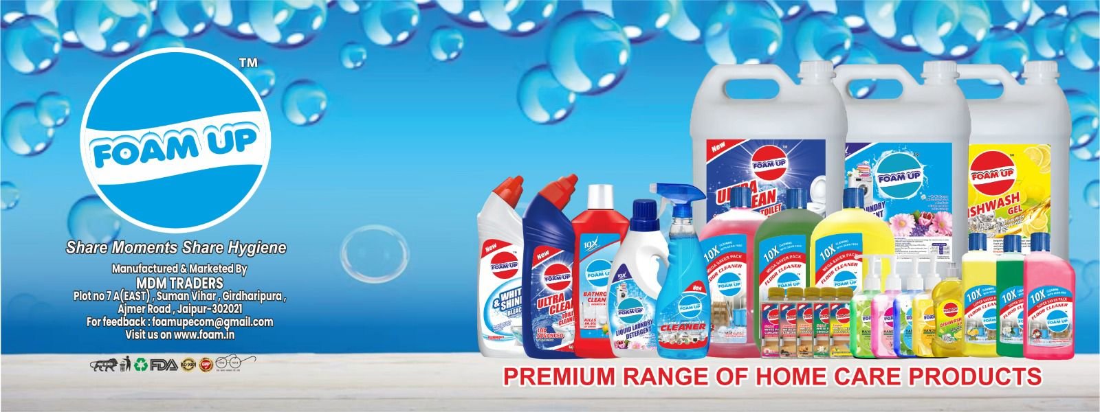 We at Foam-up Hygienic Products continously work in direction to provide our clients with best quality products at best prices to promote the sense of Cleanliness & Hygiene among masses.Currently. we are manufacturing more than 15 products under FOAMUP brand providing one stop solution for Cleaning & Hygiene to our esteemed Distributors & Suppliers in Industrial, Hospitality. Commercial and FMCG Retailing Sectors.
